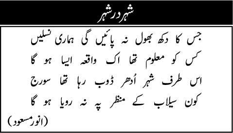 ISH TARAF SHEHAR UDAR DOOB RAHA THA SOORAJ,KON SELAAB K MANZAR PA NA ROYA HO GA